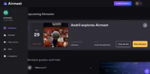 From here, it is easy to create and manage Airmeets. FYI, airmeets are online events, which you can create via this software.
