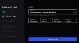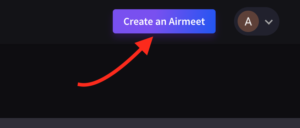 Head over to the top right part of the screen and click “Create Airmeet”.
