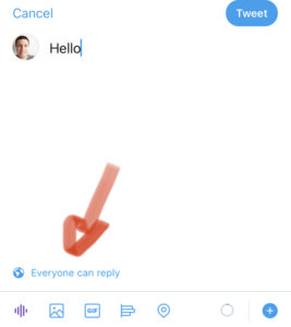 2. In the bottom left part of the tweet, there is an option “Everyone can reply”. Tap on it.
